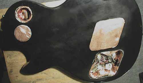 I lined the cavities where the pots and the switch are with copper foil that I got from "Stewart McDonald". I also lined the plastic lids with the foil that you can see laying open beside the cavities.
